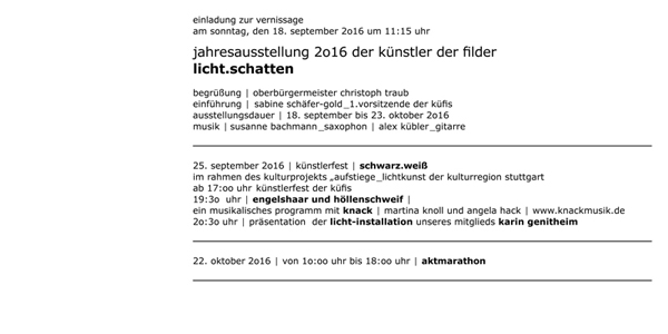 19.04.- 22.06.2015: Jahresausstellung der Künstler der Filder e.V. in der Städtischen Galerie Filderstadt