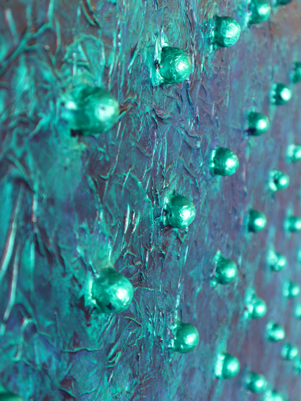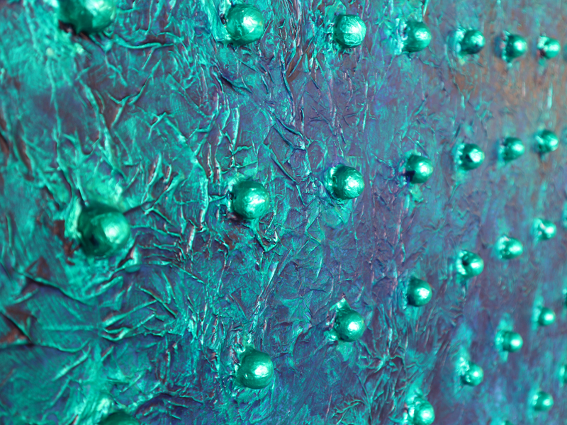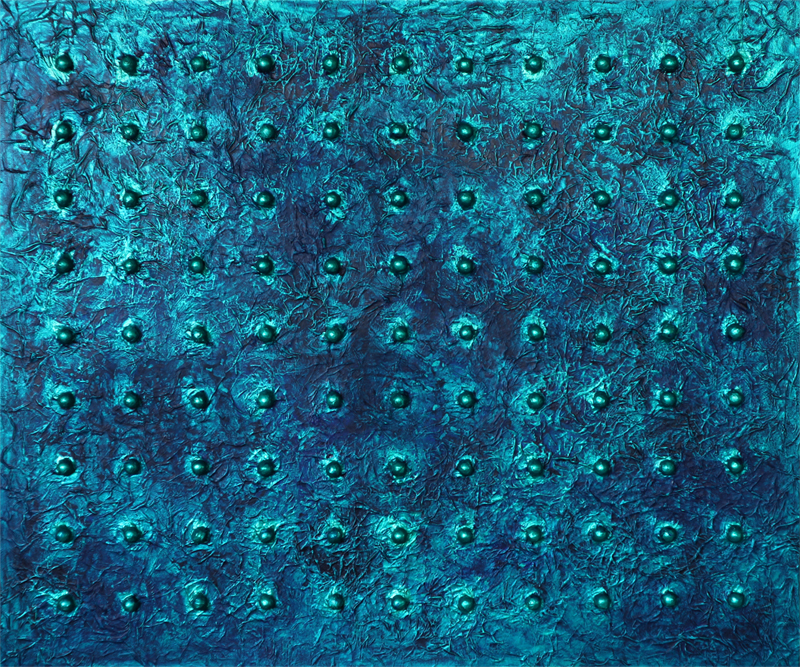 Mixed Media, Acryl, Holzhalbkugeln / Leinwand